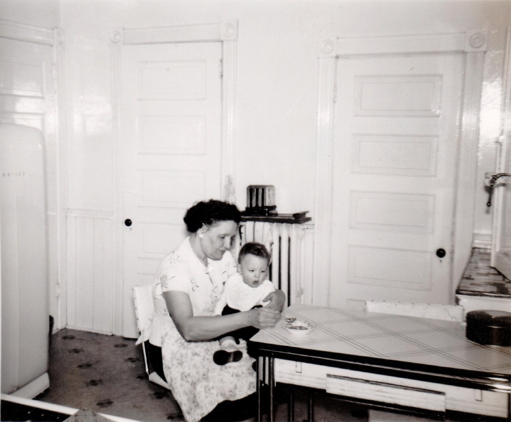 Grandma and I in her kitchen, 220 N. Victoria, St. Paul, Minnesota, 1950.