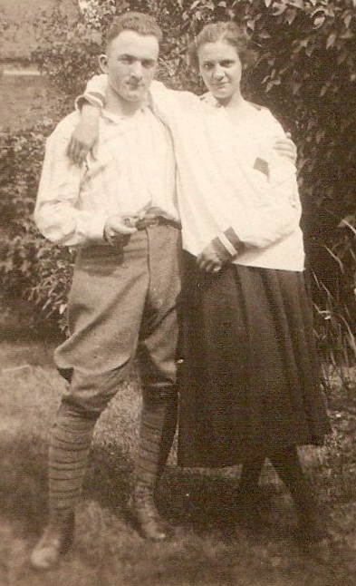 Grandpa with pipe and Grandma, International Falls, Minnesota, 1920.