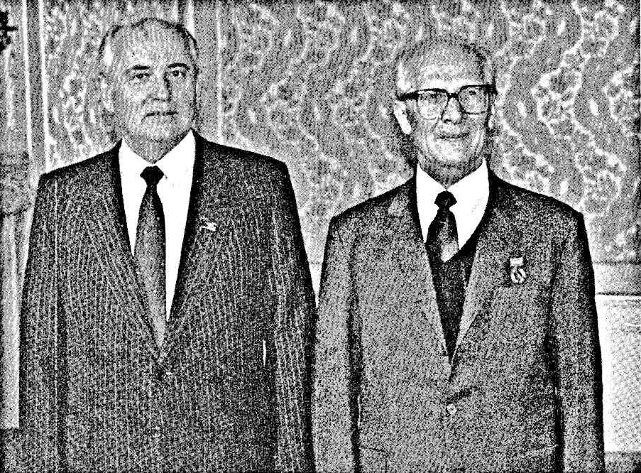 Gorbatschow was the guest of honor in Berlin at the official celebration of East Germany’s 40th anniversary. In the Palace of the Republic in Berlin he and Erich Honecker, General Secretary of the Central Committee of the German Socialist Unity Party and Chairman of the State Council of the GDR, made typical socialist-type speeches and toasted the success of the “extremely successful,” anti-fascist East German state. They appeared to take no notice of the thousands of people outside the People’s House — as the Palace of the Republic was also known — who were demonstrating for more democracy, freedom of travel, and for a change in government leadership. The demonstrators saw in the Soviet reformer Gorbatschow someone who would support their desire for change. “Gorbi! Gorbi!” they chanted. But the official state acts and the massive demonstrations all around East Germany were taking place in two separate worlds. At least for the time being.