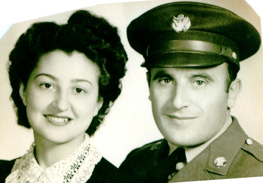 Just two months before being called up, Julian married Gishie Bederman, born July 23, 1921. Gishie, graduated with a PE major at the University of Kentucky and married Julian on the same day: May 30, 1942.10 The young bride followed her soldier-husband to several military bases in the United States, writing letters to the local paper about her experiences.11 Daughter Simone recounts that Gishie also participated in the war effort. “She was a Rosie the Riveter when he was in California. She was proud of being one…. When he got shipped overseas, that’s when she came home.”12